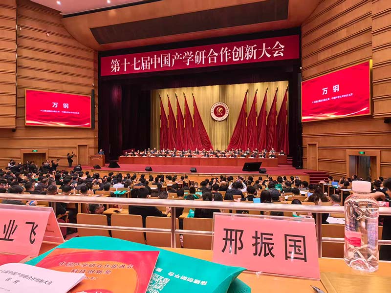 河北工程大学教授、公司技术负责人邢振国获产学研合作创新人物奖,应邀到会上台领奖。来自全国的政、产、学、研、金各界1000余位代表参加大会。